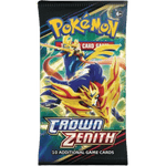 The Legendary heroes Zacian and Zamazenta shine with new VSTAR Powers, and an all-star assembly of Pokémon and Trainers arrive to celebrate the era of Pokémon V! Discover dazzling special illustrations in the Galarian Gallery, and wield the strength of rare and powerful Pokémon, including Charizard as both a Pokémon VSTAR and Radiant Pokémon. Many more Pokémon have their own tales to tell in battle as the Sword & Shield Series reaches its towering peak in the TCG: Crown Zenith expansion!