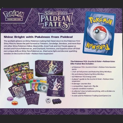The Pokémon TCG: Scarlet & Violet—Paldean Fates Elite Trainer Box includes: