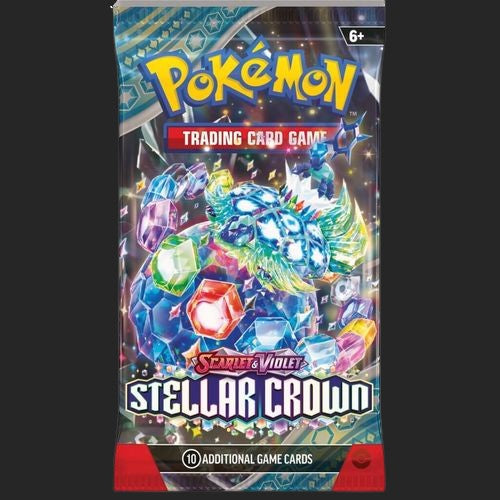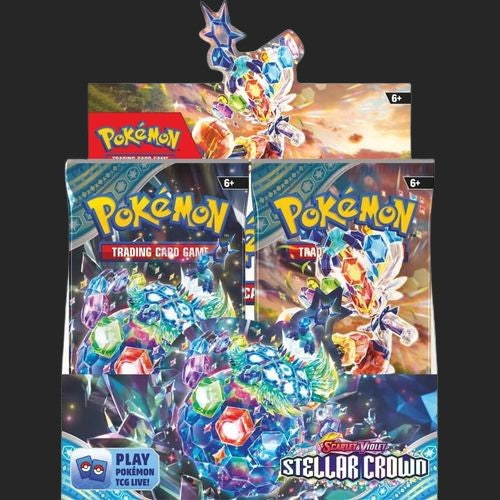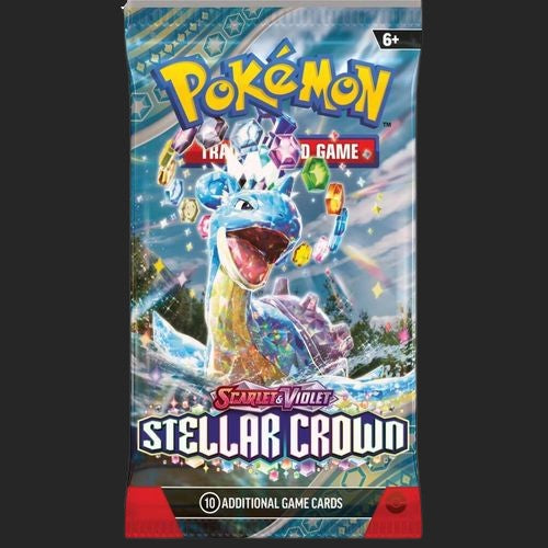 Descend into a world below the surface and discover the true potential of the Terastal phenomenon! The Legendary Pokémon Terapagos takes the throne, joined by Cinderace ex, Lapras ex, and Galvantula ex, all wielding brilliant new powers as Stellar Tera Pokémon ex. The newly discovered Hydrapple ex leads even more Pokémon ex into battle, and ACE SPEC cards continue to shake up the game in the Pokémon TCG: Scarlet & Violet— Stellar Crown expansion!